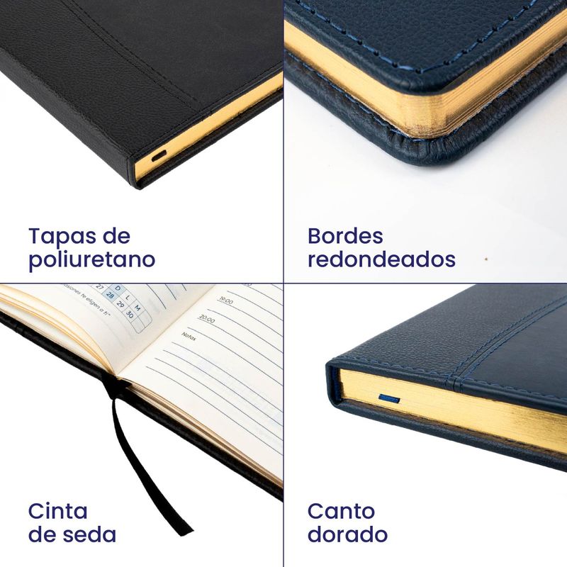 La agenda Saturno Azul Marino KP combina diseño elegante y funcionalidad en un formato semanal bilingüe (español e inglés). Con 138 páginas de papel crema de 60 g/m² y frases motivadoras cada semana, es perfecta para equilibrar vida personal y profesional. Sus tapas de biocuero italiano y cantos dorados aportan lujo y resistencia. Además, comprometidos con el medio ambiente, apoyamos el manejo forestal responsable y contamos con las certificaciones FSC A000511, ISO 9001:2015 e ISO 14001:2015. Con acabados de alta calidad y cinta separadora de seda, esta agenda es ideal para quienes buscan organización, estilo y sostenibilidad. ¡Transforma tus semanas con Saturno KP! Hazlo fácil, hazlo rápido, hazlo tuyo.