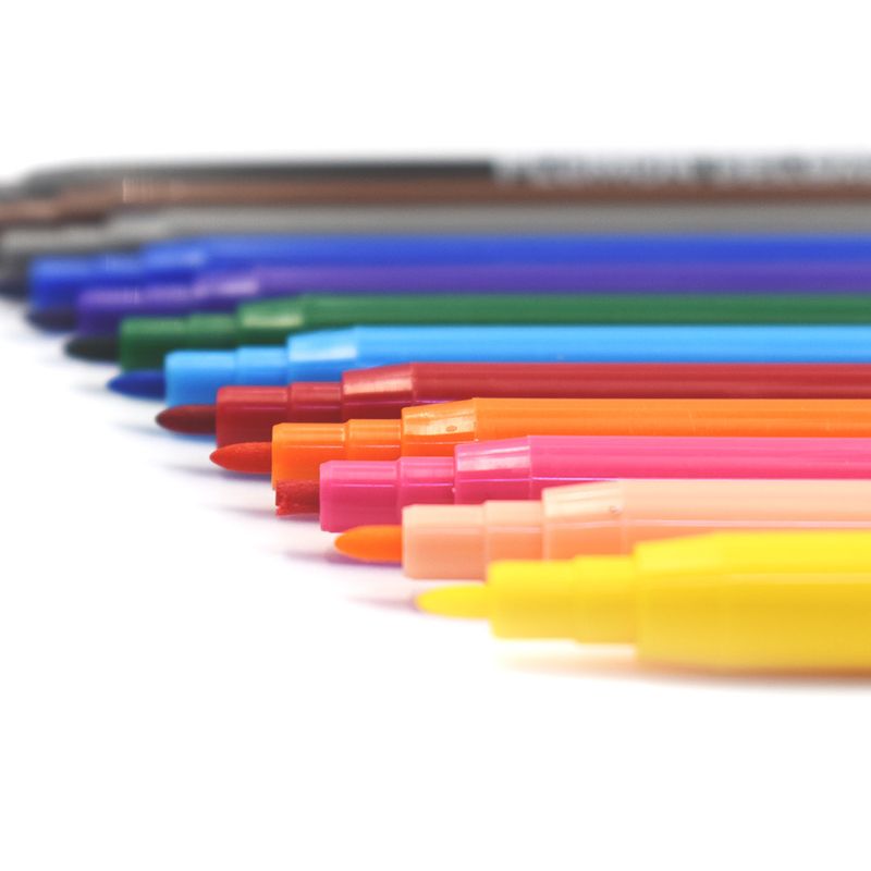 Plumones de punta fina ideales para escribir, dibujar y hacer detalles precisos. Colores vivos y tinta lavable. Perfectos para tareas, ilustraciones o lettering.